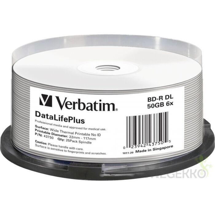 Verbatim | BD-R Blu-ray | 50 GB - 6x Snelheid - Thermisch Beschrijfbaar - Cakebox