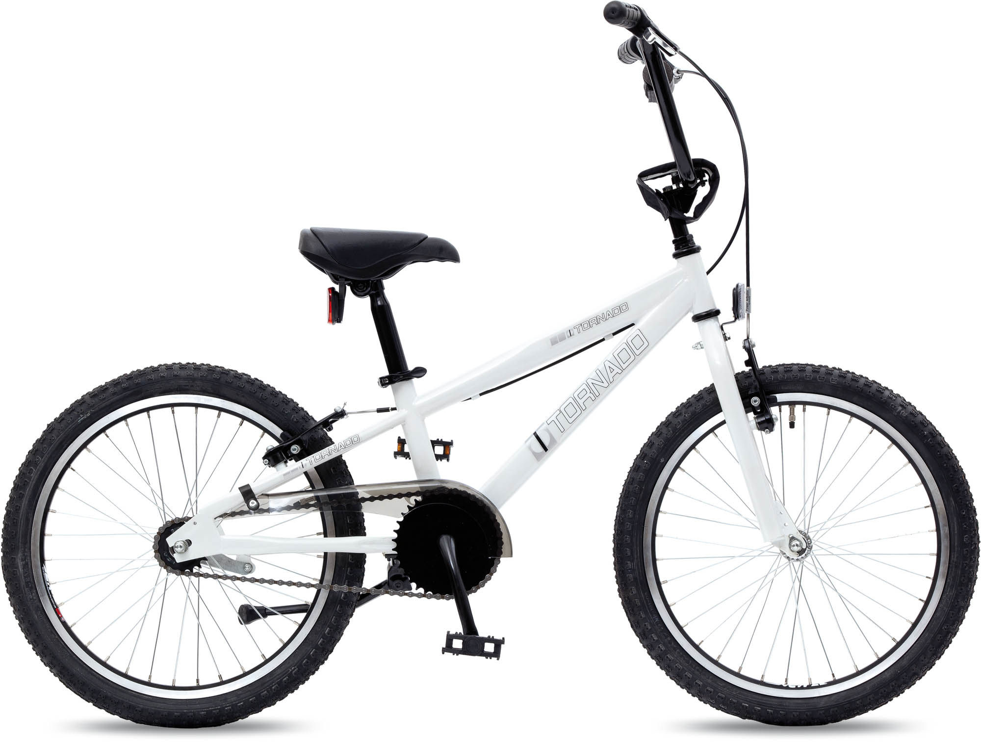 Het frame van de BMX Tornado is vervaardigd uit hoogwaardig staal, wat garant staat voor stevigheid en duurzaamheid. De framemaat is 52 cm en het totale gewicht bedraagt 15 kg, licht genoeg om soepel te manoeuvreren. De buitenbanden van 20 × 2.195" bieden optimale grip en stabiliteit.