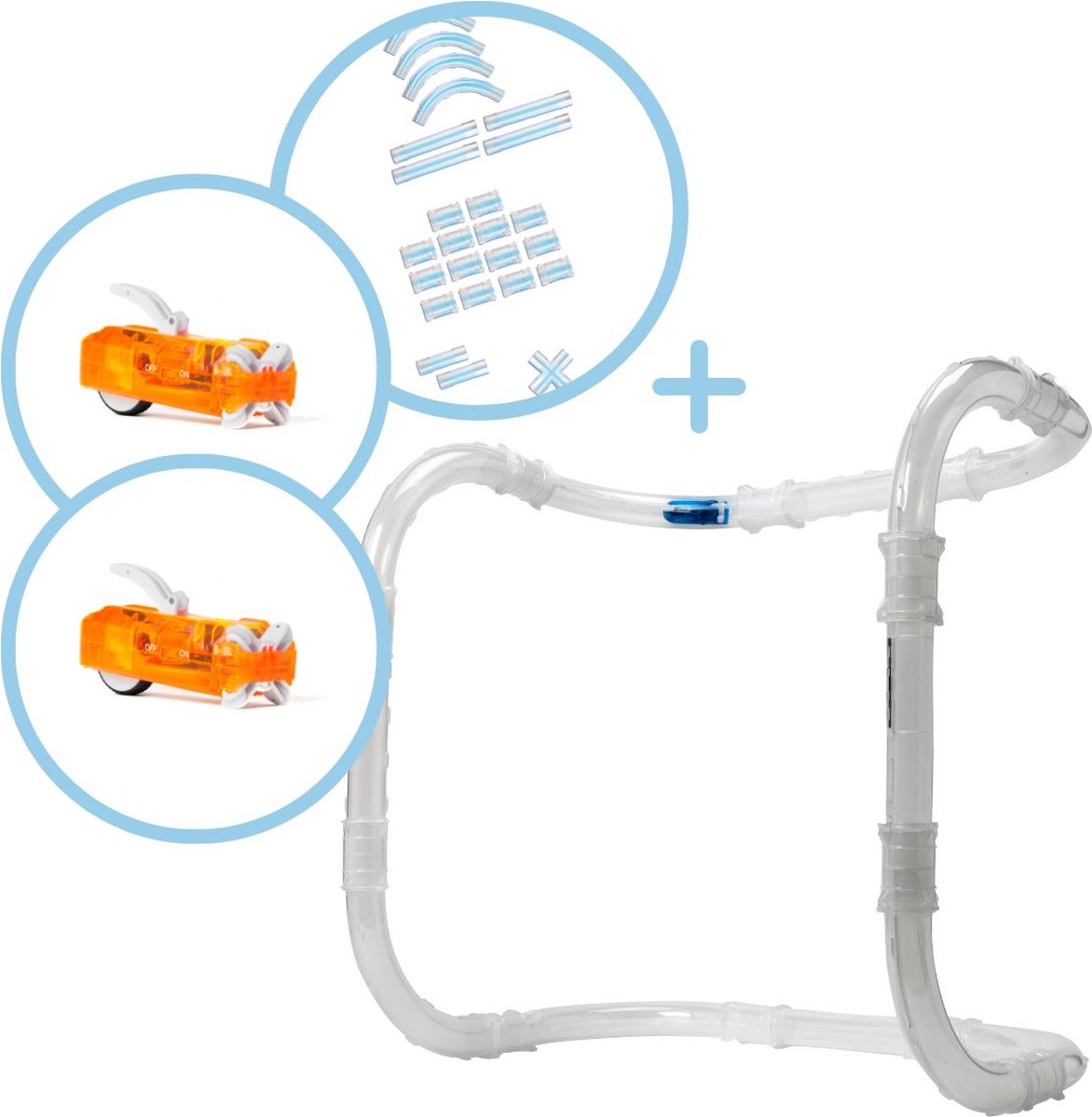 De set bevat 54 plus 6 extra onderdelen, wat zorgt voor een totale lengte van 6 meter van racebaan. De buizen zijn vervaardigd uit duurzaam kunststof dat bestand is tegen intensief gebruik, waardoor de racebaan robuust en langdurig is. De raceauto's zijn ook ontworpen met veiligheid en kwaliteit in gedachten, zodat kinderen veilig kunnen spelen.