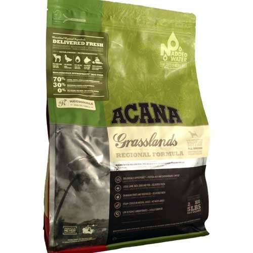 Acana Regionals Grasslands is een graanvrije voeding, boordevol vers vlees en vis, geschikt voor honden van alle rassen en leeftijden. Dit recept bevat rijkelijk lamsvlees, eend en vers gevangen vis, dagelijks vers aangeleverd voor optimale voedingswaarde en smaak. De dierlijke vetten zijn uitstekend verteerbaar en de toevoeging van fruit, groenten en grassen staat garant voor een gezonde maaltijd. Dankzij het graanvrije recept is dit voer ook ideaal voor honden met een graanallergie.