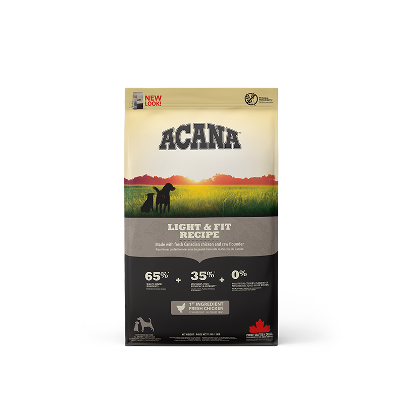 Voor een hond is een goede voeding essentieel. Het vereist een voeding die rijk is aan dierlijke eiwitten om zo de ontwikkeling van de spieren te ondersteunen en een beperkt aantal koolhydraten voor het juiste lichaamsgewicht. Acana Heritage Light&Fit is daarom perfect voor je hond! Het wordt bereid in gecertificeerde en onderscheidde keukens in Alberta, Canada, waar alle grondstoffen dagelijks vers aangeleverd worden.