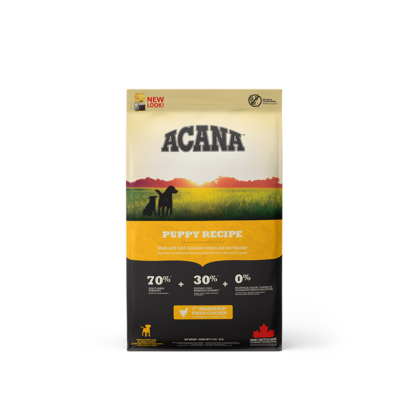 Acana Heritage Puppy en Junior is speciaal ontwikkeld voor puppies en jonge honden en is rijk aan vlees van de scharrelkip vers van lokale boerderijen, hele scharreleieren, zongerijpt fruit en groenten en in het wild gevangen bot.