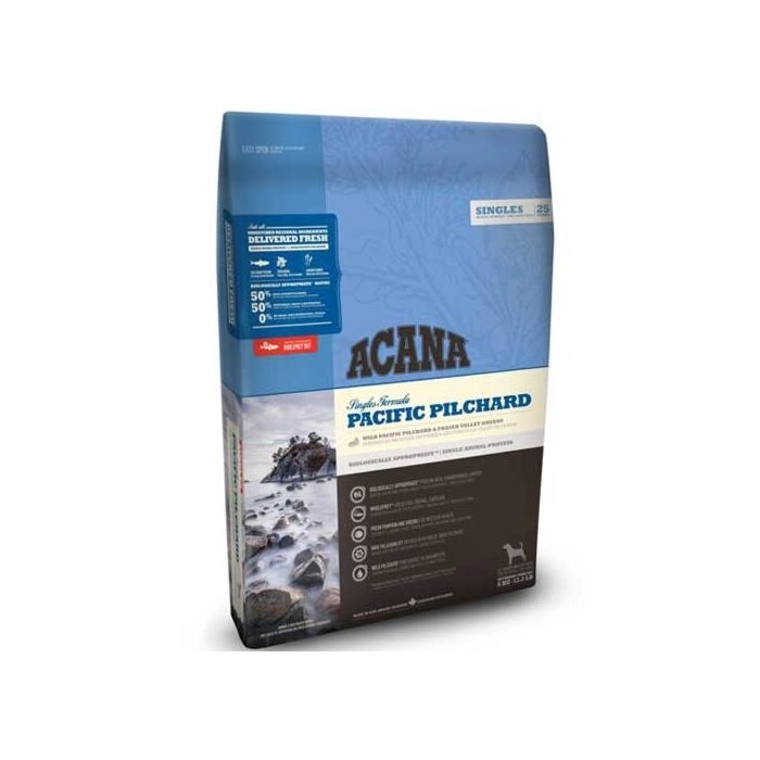 Acana Singles Pacific Pilchard hondenvoer zit boordevol verse vis en is geschikt voor alle honden. Ook voor honden met een voedselallergie of intolerantie is dit een goede keus daar het voer aleen vis als proteinebron heeft en graanvrij is.