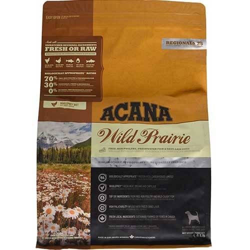 Acana Wild Prairie zit boordevol verse vis en vlees en is geschikt voor alle honden. Tevens is Acana Wild Prairie graanvrij en rijk aan vlees van scharrelkippen, scharreleieren en in het wild gevangen snoekbaars.