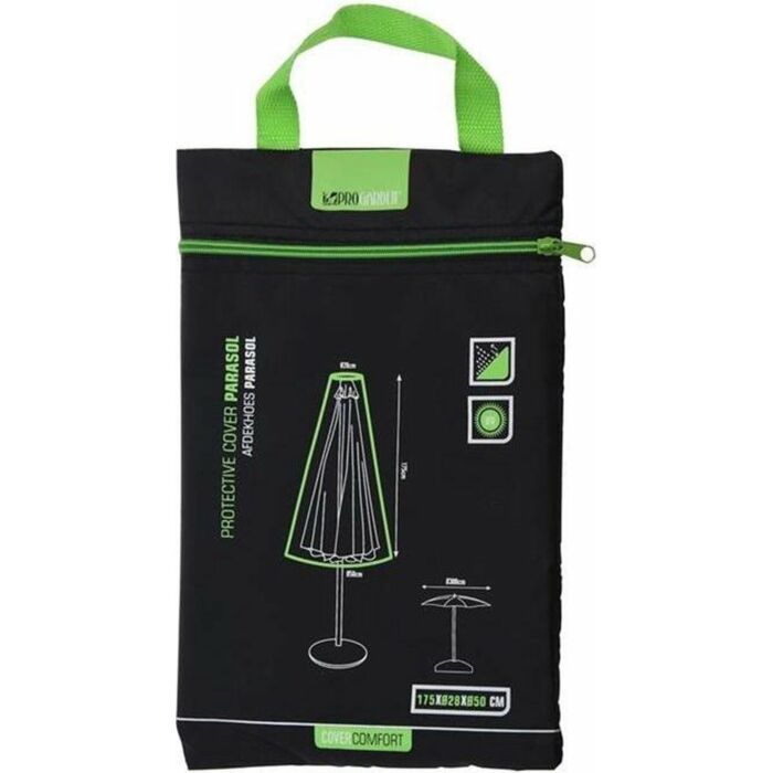 De afdekhoes is ontworpen om je parasol te beschermen tegen regen, zonneschijn, vorst, vuil en bladeren. Het minimalistische ontwerp in de kleur zwart maakt het een stijlvolle aanvulling op je tuinmeubilair, terwijl het ook functioneel is. De hoes kan eenvoudig over de parasol worden geplaatst en zorgt voor een strakke pasvorm die meebeweegt met de wind.