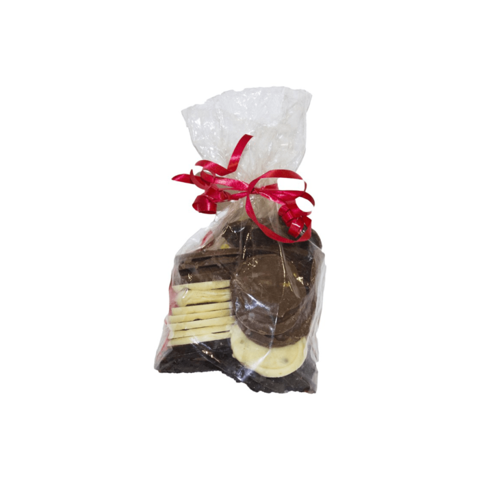 Geniet van de heerlijke ambachtelijke chocoladeflikken met stukjes amandel. Deze flikken zijn verkrijgbaar in de smaken wit, melk en puur, waardoor er voor elke chocoladeliefhebber iets te vinden is. Bij iedere bestelling ontvang je een zak van 500 gram gemengde chocoladeflikken, perfect voor een filmmarathon, feestje of als verwennerij voor jezelf.