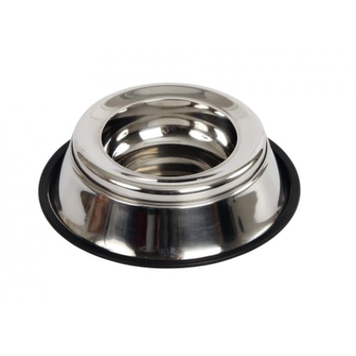 Deze RVS waterbak combineert stabiliteit met het gemak van een anti spatwaterrand. Deze rand zorgt ervoor dat het opspattende water in de drinkbak blijft. De brede uitlopende vorm met de rubberen antisliprand aan de onderzijde houdt de kom stevig op zijn plaats. De antisplashring is afneembaar voor een eenvoudige reiniging.