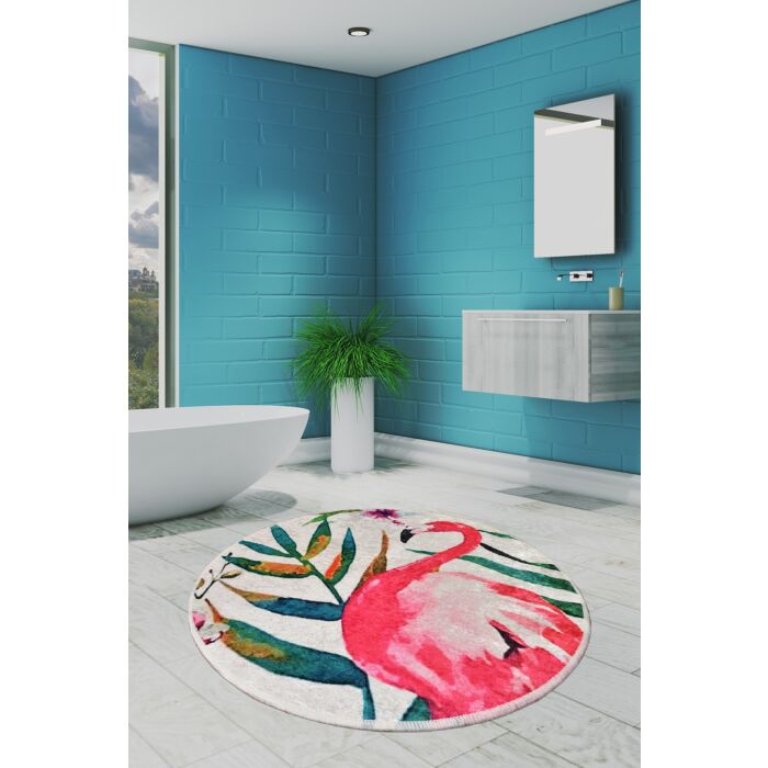De badmat heeft een diameter van 140 cm en is gemaakt van hoogwaardig 100% polyester materiaal.