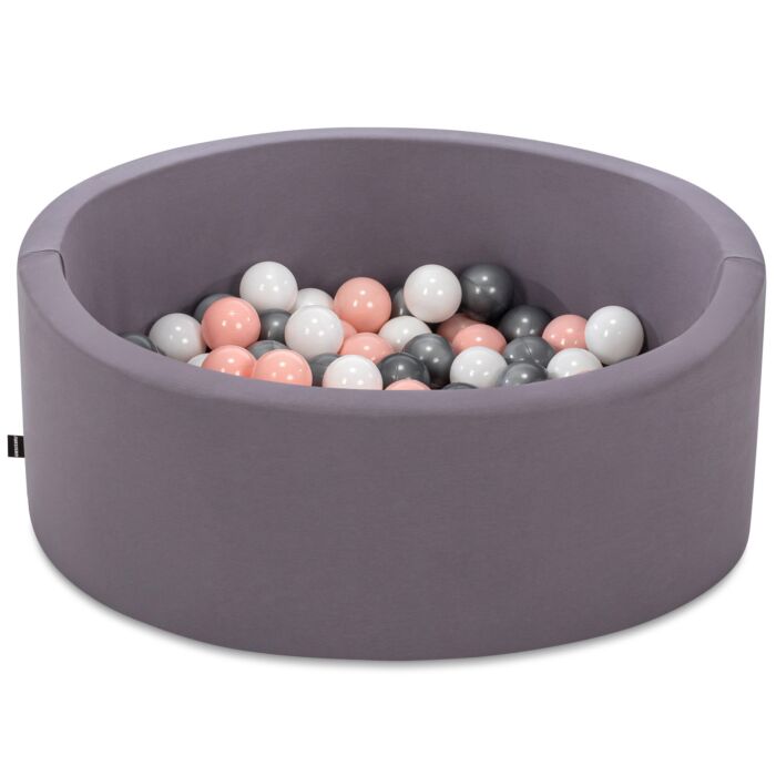 - Beschikbaar in grijs met 150 ballen in de kleuren roze, wit en grijs