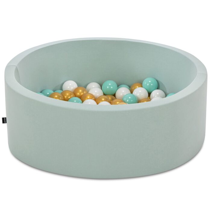Onze ballenbak biedt een veilige en stimulerende omgeving voor fantasierijk spel en moedigt creativiteit en sociale interactie aan. De set van 150 ballen in de kleuren mint, goud en wit zorgt voor een visueel aantrekkelijke speelplek die de verbeelding van kinderen prikkelt.