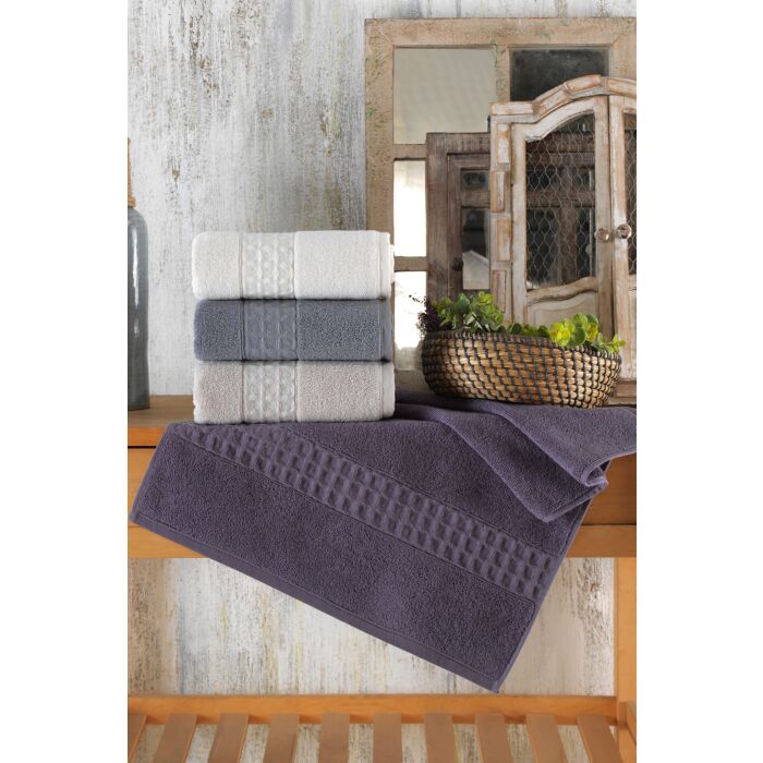- Set van 4 handdoeken in paars, grijs, wit en crème
