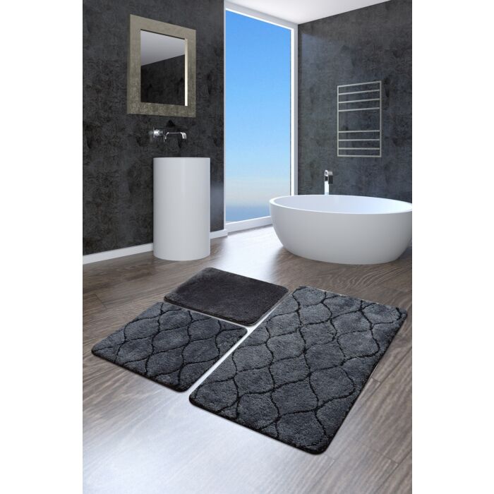 Acryl badmatset (3 stuks) – antraciet | 100% acryl | antibacterieel | machinewasbaar