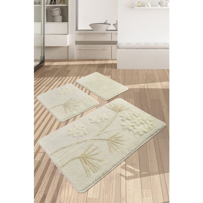 Ervaar luxe en comfort met onze 3-delige badmattenset. Tover je badkamer om in een oase van rust met deze prachtige set, ontworpen om de ultieme badervaring te bieden. Gemaakt van 100% acryl, biedt de badmatset een luxueus gevoel onder je voeten met een pluche poolhoogte van 25 mm, waardoor elke stap een genot wordt.