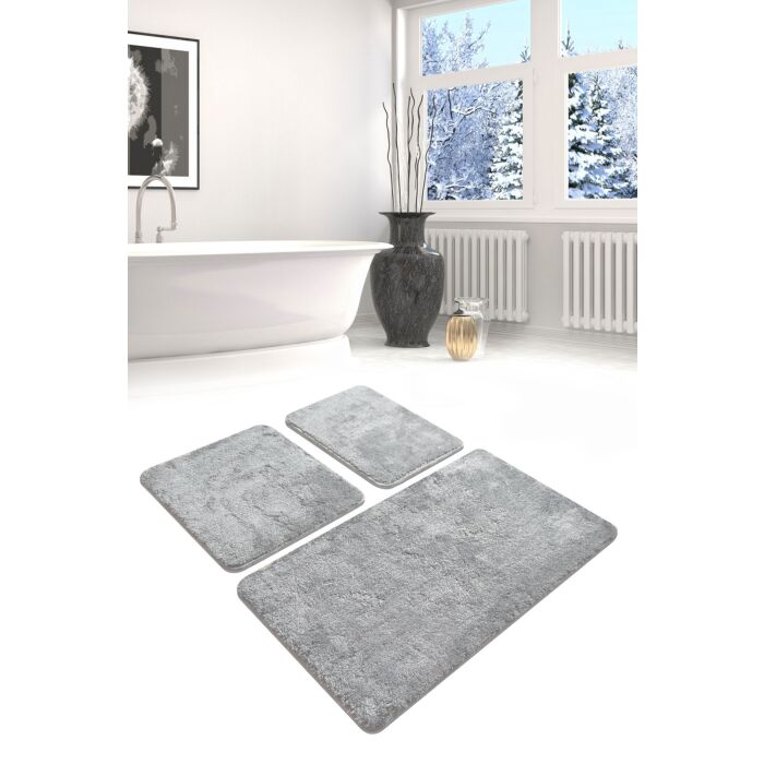 Deze hoogwaardige badmatset is volledig van 100% acryl met een poolhoogte van 18-30 mm. Voorzien van een antislip-onderzijde en machinewasbaar op 30 °C. Handgemaakt voor een luxueuze kwaliteit en met een gewicht van 1450 gr/m². Beschikbaar in de kleur Grijs.