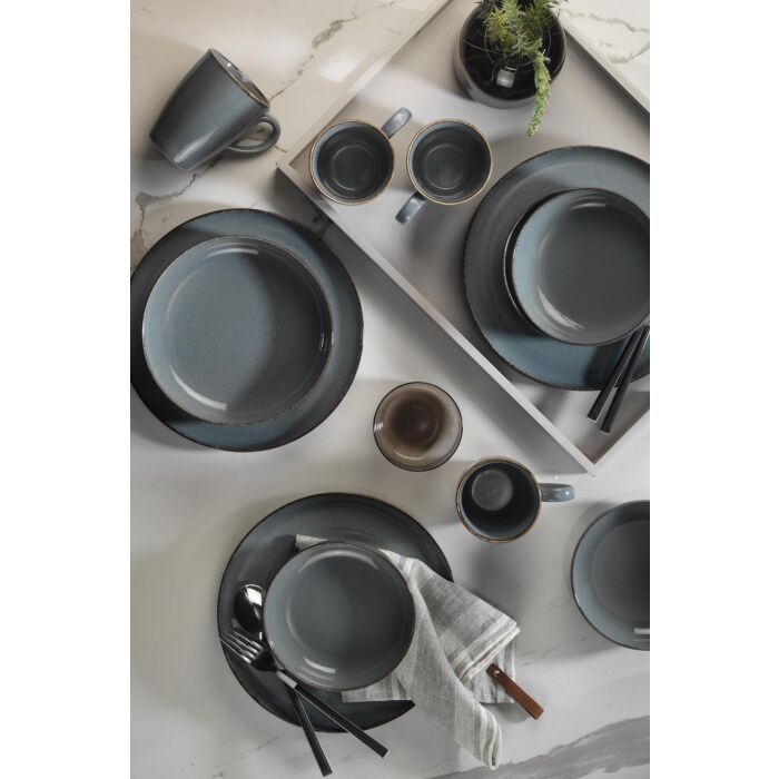 De grijze kleur van deze eetset past moeiteloos bij elk interieur, en de set biedt alles wat je nodig hebt voor een complete eetervaring, inclusief dienbladen, borden, kommen en mokken. Het ontwerp combineert stijl en functionaliteit perfect.