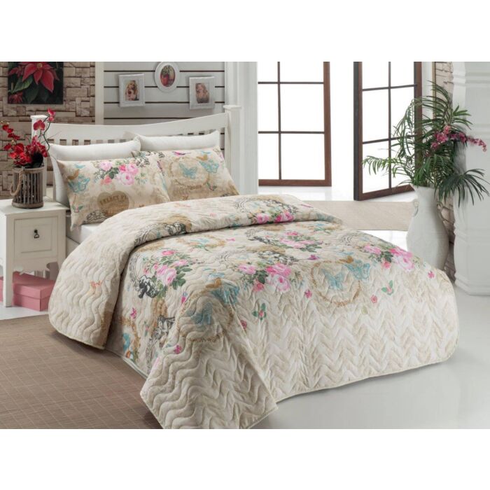 Asir dubbele gewatteerde sprei-set – beige-camel