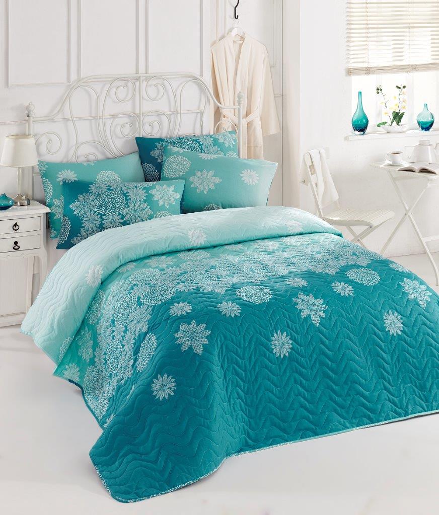 Asir Dubbele gewatteerde set voor sprei - Turkoois Wit