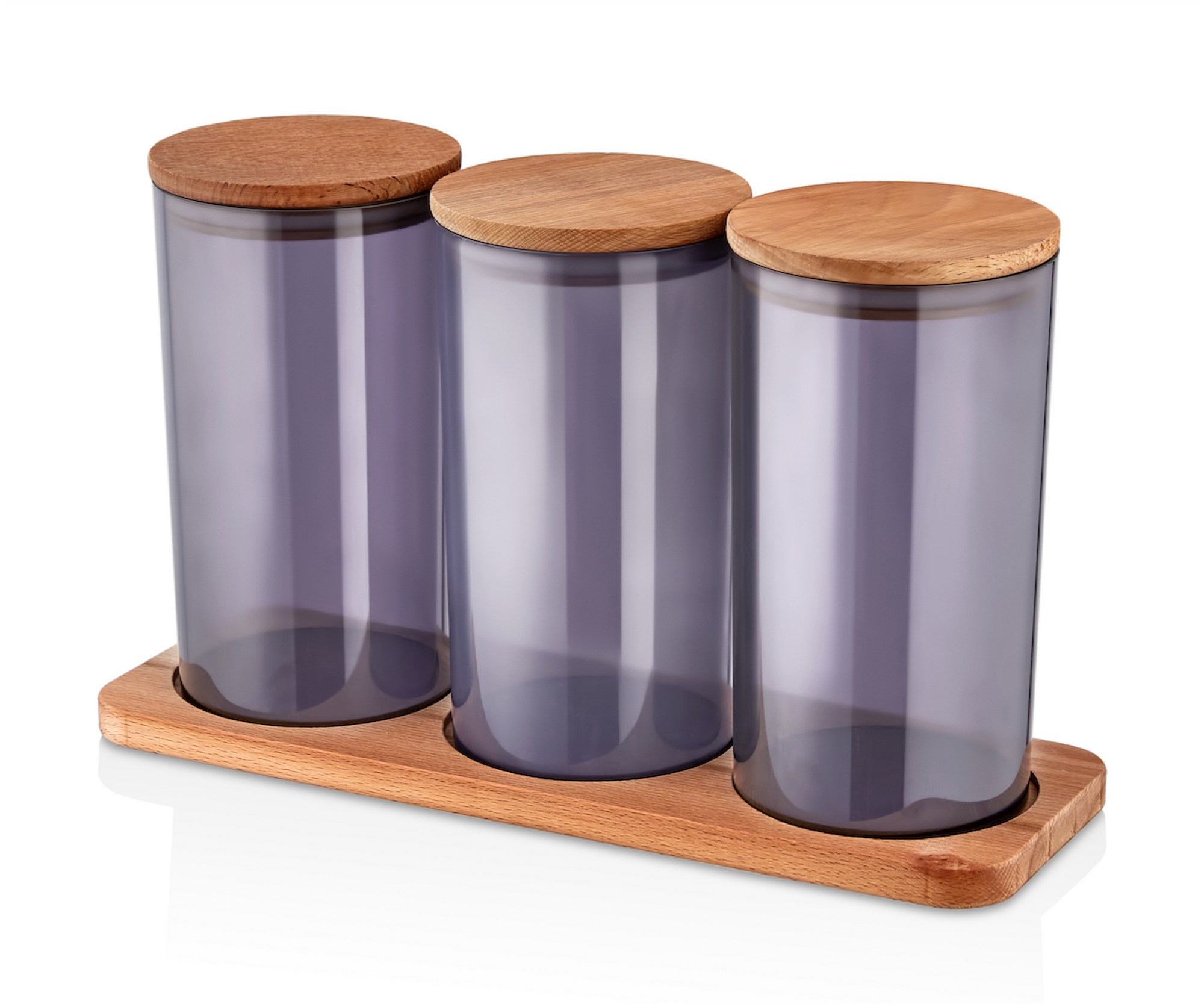 Met een royale afmeting van 10 x 10 x 14 cm en een inhoud van 800 cc bieden deze potten voldoende ruimte voor al je opslagbehoeften. De set bevat drie potten, zodat je je keukenbenodigdheden gemakkelijk kunt organiseren. De houten standaard van 33 x 11,5 x 15 cm houdt de potten netjes geordend en gemakkelijk toegankelijk.