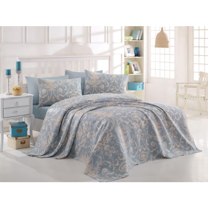 Asir piqué beddenset voor twee personen - Blauw Room - 200 x 235 cm