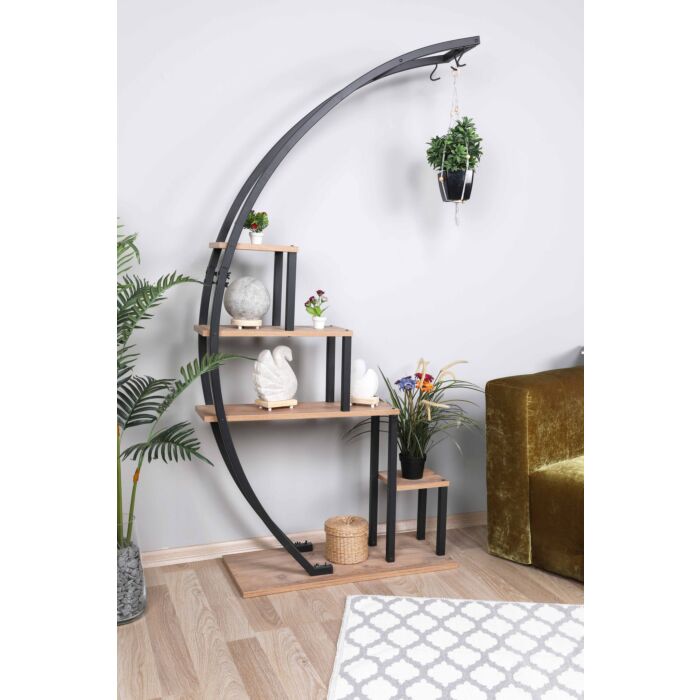 Met zijn gebogen metalen ontwerp biedt deze boekenplank niet alleen voldoende ruimte voor boeken, decor en meer, maar ook een pothouder voor planten of keukenbenodigdheden. Het voegt een uniek tintje toe aan je ruimte.