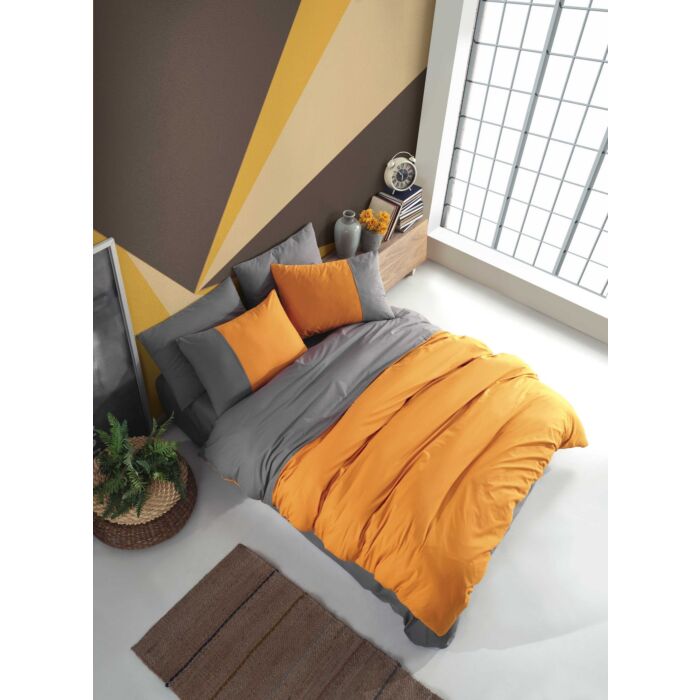 Asir Poplin eenpersoons dekbedovertrekset – oranje-antraciet