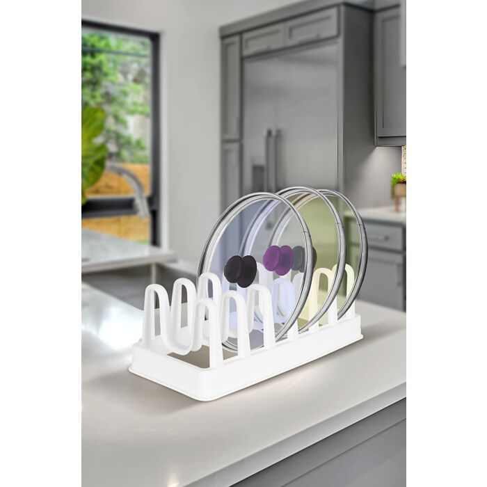 De potdekselhouder bespaart ruimte en tijd in de keuken door alle potdeksels georganiseerd te houden en gemakkelijk toegankelijk te maken tijdens het koken.