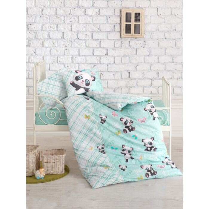 Het charmante ontwerp van ons dekbedovertrek, in een frisse combinatie van mint en wit, zorgt voor een vleugje eigenzinnigheid in elke babykamer. Geschikt voor zowel jongens als meisjes, biedt dit ontwerp veelzijdigheid en stijl aan de slaapkamer van uw kleintje.
