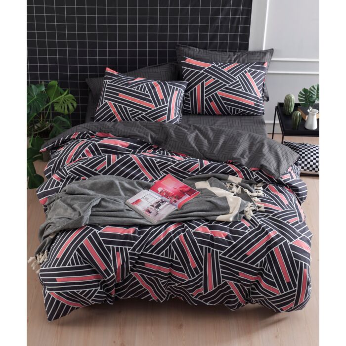 Asir Ranforce dubbele dekbedovertrekset - Antraciet Roze