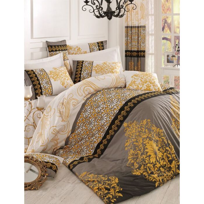 Verhoog de esthetische aantrekkingskracht van je slaapkamer met het elegante ontwerp van onze ranforce tweepersoons dekbedovertrekset. De combinatie van crèmekleurig en geel, evenals grijs en zwart, voegt een vleugje verfijning en stijl toe aan elke slaapkamerinrichting, waardoor het de perfecte aanvulling is voor je huis.