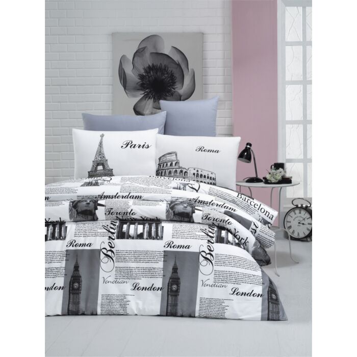 Met een prachtige combinatie van witte, zwarte en grijze kleuren voegt ons dekbedovertrek een vleugje elegantie en verfijning toe aan elke slaapkamer. Het tijdloze ontwerp past moeiteloos bij elke interieurstijl, waardoor het een perfecte keuze is voor zowel moderne als traditionele ruimtes.