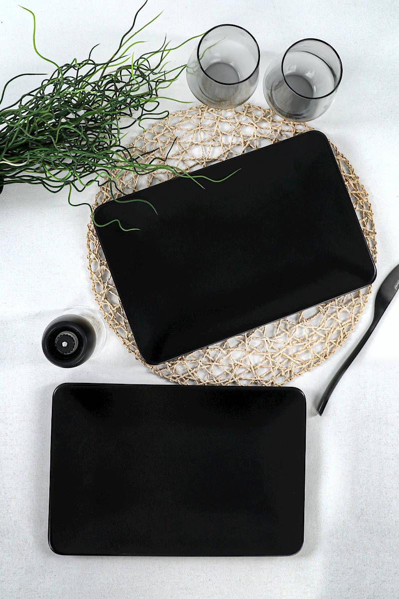 Ervaar elegantie en duurzaamheid met onze schotels. Til je eetmomenten naar een hoger niveau met deze stijlvolle set. Gemaakt van 100% keramisch steengoed en speciaal ontwikkeld om geen water op te nemen, waardoor vlekken en geurtjes geen kans krijgen. Dankzij de antibacteriële eigenschappen geniet je van een hygiënisch oppervlak voor al je favoriete gerechten. Onze schotelenset is vervaardigd uit milieuvriendelijke materialen die lang meegaan en eenvoudig te reinigen zijn. Bespaar tijd en moeite dankzij het onderhoudsvriendelijke design. Met een royale maat van 31 x 21 cm per schotel is deze set ideaal voor voorgerechten én hoofdgerechten. Verwarm je gerecht direct in de magnetron en zet alles na gebruik zo in de vaatwasser (tot 50°C). Voeg een moderne, strakke touch toe aan je tafel met de stijlvolle zwarte afwerking. Of je nu een etentje organiseert of een rustige avond thuis hebt, deze schotels maken elk moment bijzonder.