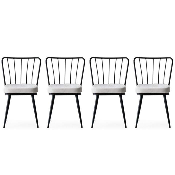Verander je woonruimte in een oase van bohemien elegantie met onze prachtige stoelenset. Deze set van vier stoelen is gemaakt met uiterste precisie en aandacht voor detail en is ontworpen om een vleugje verfijning toe te voegen aan elke kamer. Geniet van het luxueuze comfort van onze stoelenset, met een pluchen zitting van fluweelstof die je uitnodigt om onderuit te zakken en te ontspannen. Het stevige metalen frame garandeert een lange levensduur, terwijl de zitting van gemelamineerd spaanplaat bestand is tegen krassen en vlekken. Met zijn strakke zwarte kleur en tijdloze ontwerp past onze stoelenset moeiteloos bij elke interieurstijl, of die nu modern of traditioneel is. Of je ze nu rond je eettafel zet of als accentstoelen in je woonkamer gebruikt, deze stoelen zullen de esthetische aantrekkingskracht van je ruimte direct verhogen. Breng de weelde van een hotel naar je eigen huis met onze stoelenset. De combinatie van een metalen rugleuning en een zitting van fluweelstof straalt een luxueuze sfeer uit, waardoor je elke dag het gevoel hebt dat je geniet van een vijfsterrenervaring.