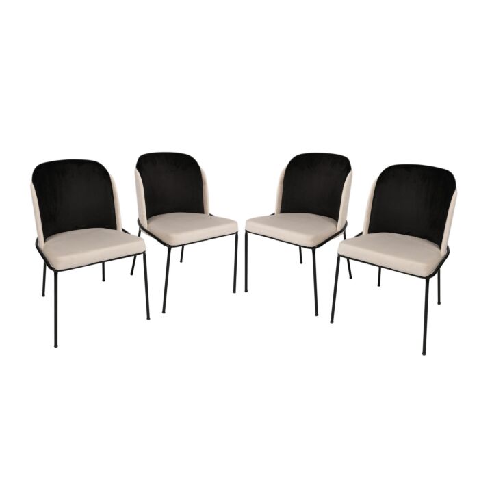 Omarm het bohemien concept en laat je creativiteit de vrije loop met onze stoelenset. De unieke mix van zwarte en crème kleuren voegt een vleugje verfijning toe aan elke ruimte, terwijl de ingewikkelde patronen op de fluwelen stof een artistieke flair uitstralen. Of je nu een etentje geeft of gewoon geniet van een rustige avond thuis, deze stoelen zullen de perfecte gespreksstarter zijn.
