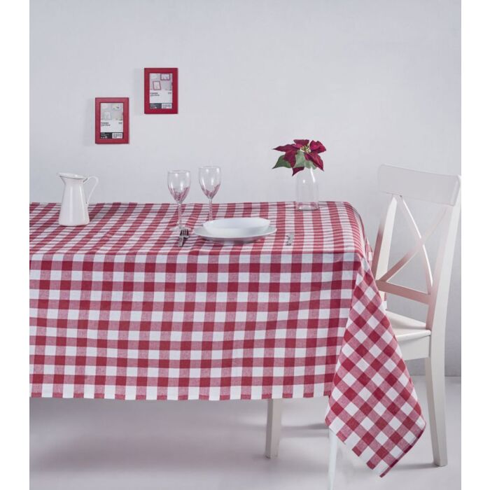 Ons tafelkleed is gemaakt van 100% katoen en heeft een afmeting van 160 x 220 cm. Het is voorzien van een geruit patroon in de kleur rood.
