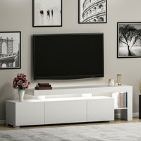 Het moderne en stijlvolle ontwerp van de tv-standaard maakt het een perfecte aanvulling op elke woonkamer. De strakke lijnen en de witte afwerking geven het een eigentijdse uitstraling, terwijl de ingebouwde ledverlichting de sfeer in de kamer verbetert. Dankzij de ruime planken is er voldoende ruimte voor al je media-apparaten en decoratieve items.