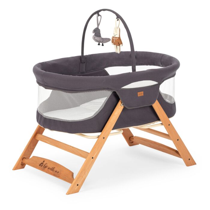 Het wiegje heeft een hoogte van 64 cm, zodat je gemakkelijk bij je baby kunt zonder je rug te belasten. Het strakke en moderne ontwerp, in combinatie met de elegante grijze kleur, past moeiteloos bij elke babykamer.