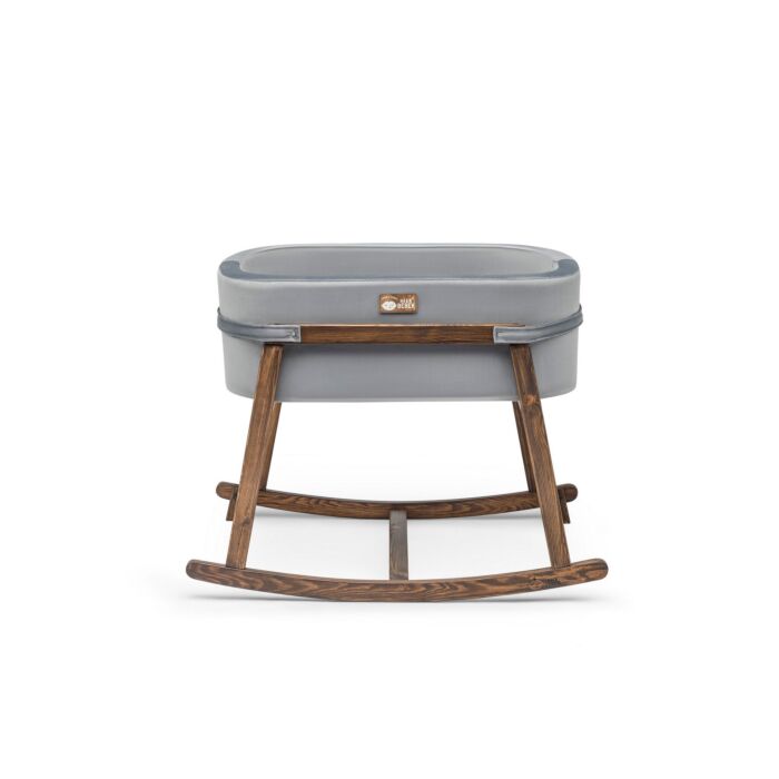 Ons wiegje is gemaakt met een stevig frame van 100% dennenhout voor langdurige duurzaamheid, en de stof bestaat uit 100% polyester voor een zacht en knus oppervlak. De combinatie van grijs en walnootkleuren voegt elegantie toe aan elke babykamer.