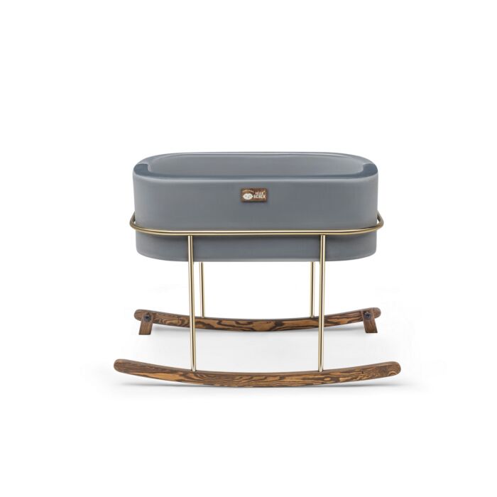 Onze wieg heeft een strak en modern ontwerp dat perfect past in elke babykamer. De combinatie van grijze en gouden kleuren voegt verfijning en elegantie toe, waardoor het een pronkstuk wordt in de kamer van je baby.