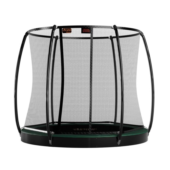 De Avyna Trampoline FlatLevel Ø245 met veiligheidsnet in de kleur groen is een unieke toevoeging aan je tuin. Met een diameter van 2,45 meter en gelijk met het maaiveld, biedt deze trampoline een veilige en plezierige springervaring voor kinderen en volwassenen.