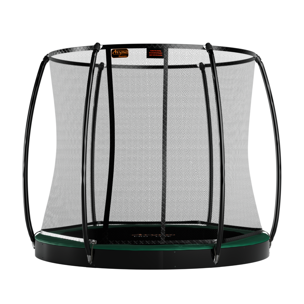 De Avyna FlatLevel trampoline van 3,05 meter met veiligheidsnet en groene rand is een perfecte keuze voor je tuin. Deze trampoline wordt volledig in de grond geplaatst, wat zorgt voor een mooie integratie met je tuin. De 3,05 meter maat is ideaal, niet te groot en niet te klein. De trampoline is voorzien van de vernieuwde Avyna MAX springmat, speciaal ontwikkeld voor de FlatLevels, waardoor je hoger, fijner en vloeiender kunt springen. Met 200% meer luchtdoorlating dan normale springmatten zorgt deze innovatieve springmat voor de allerbeste springervaring.