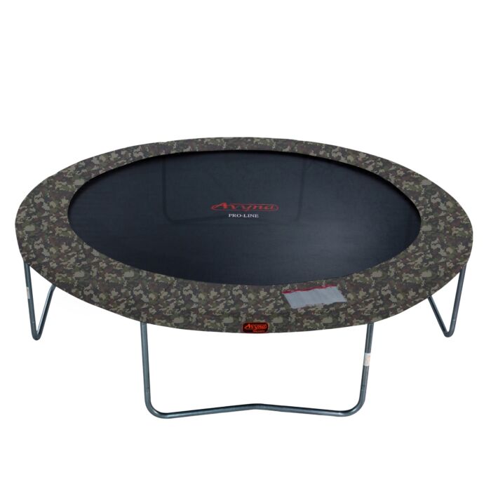De trampoline heeft een diameter van 365 cm en is voorzien van een stevig camouflage randkussen voor extra veiligheid. Het frame is gemaakt van hoogwaardig materiaal en biedt uitstekende duurzaamheid.