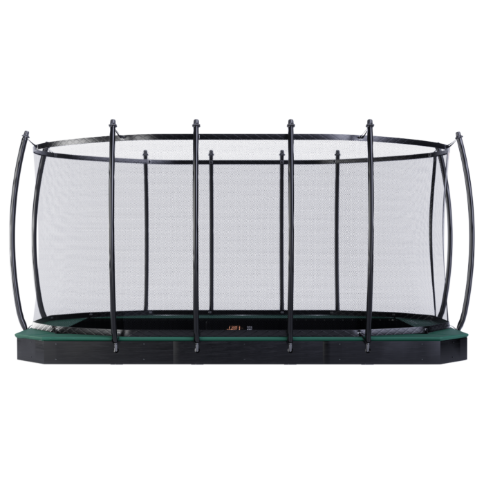 De Avyna rechthoekige Pro-Line FlatLevel COMBI trampoline (352) heeft een royale afmeting van 520x305 cm en is ontworpen voor zowel veiligheid als prestatie. Met zijn innovatieve constructie kan deze trampoline volledig vlak met de grond worden ingegraven, wat een naadloze en veilige speelomgeving creëert. De trampoline is voorzien van een harde PVC beschermingsplaat wat niet alleen de levensduur verlengt, maar ook esthetisch aantrekkelijk is.