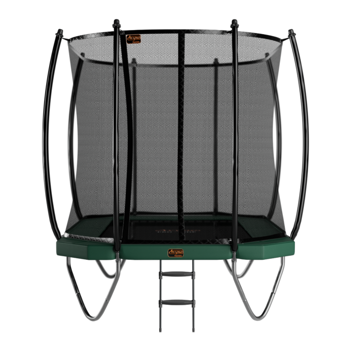De Avyna Pro-Line trampoline met veiligheidsnet 380 x 255 cm (238) in groen is een van de grotere modellen van Avyna. Met afmetingen van 3,80 meter lang, 2,55 meter breed en een hoogte van 86 cm biedt deze rechthoekige trampoline veel ruimte om te springen. Door het strakke design neemt deze trampoline minder ruimte in beslag en past perfect in elke tuin.