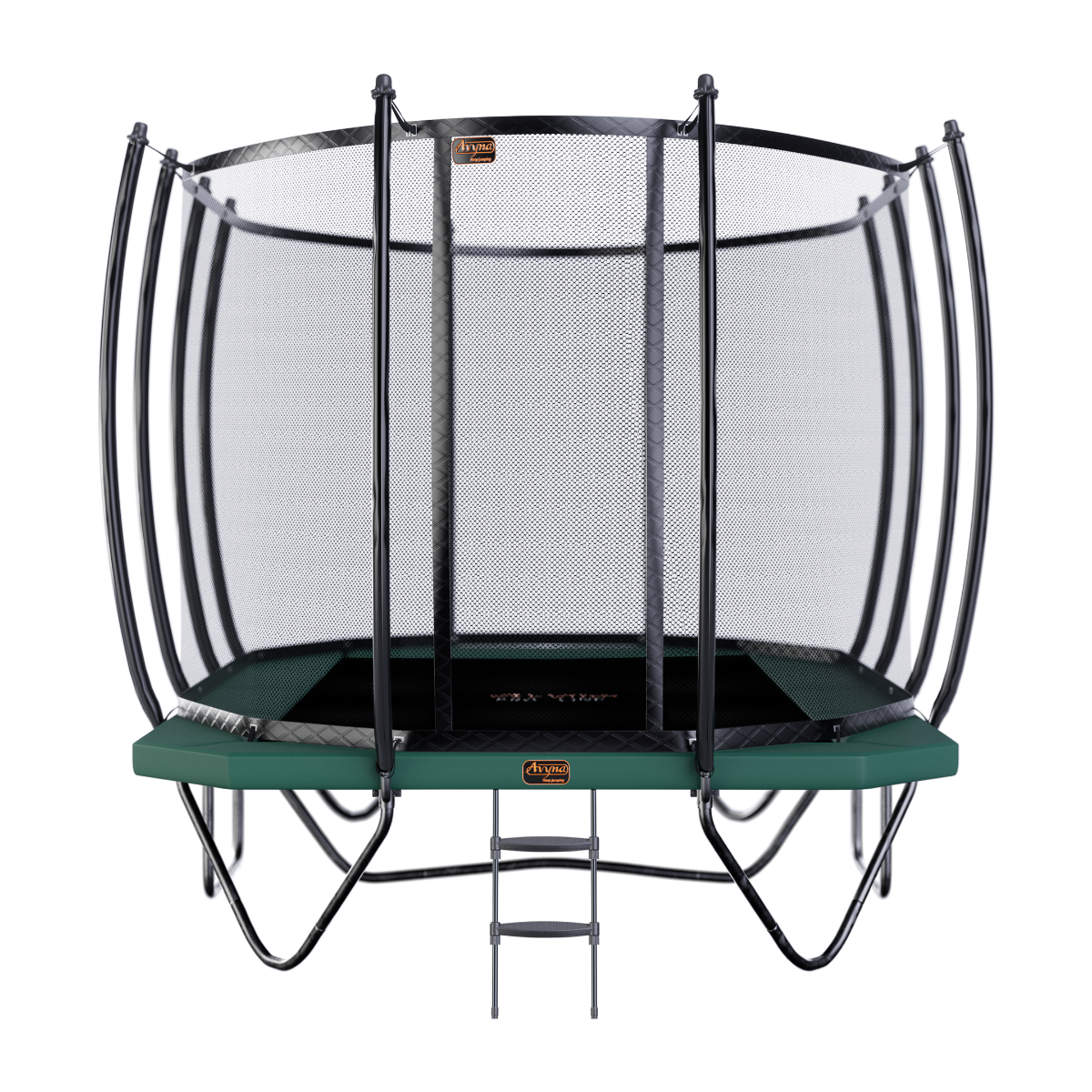 De Avyna Pro-Line trampoline is een grote rechthoekige trampoline van 5,20 x 3,05 meter met veiligheidsnet in de kleur groen. Deze trampoline biedt een enorm springoppervlak en is gemaakt van hoogwaardig materiaal, waardoor het tot het hoge segment trampolines behoort. Met een hoogte van 86 cm en een perfecte afwerking met oog voor detail, biedt de Avyna trampoline topkwaliteit en jarenlang speelplezier.