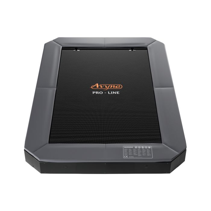 De Avyna Trampoline FlatLevel 340x240 (234) in de kleur grijs is een rechthoekige trampoline flatground van 3,40×2,40 m. Deze trampoline wordt geleverd met de vernieuwde Avyna MAX springmat, speciaal ontwikkeld voor de FlatLevel-trampolines voor een optimale springervaring. De open structuur van de springmat zorgt voor 200 % meer luchtdoorlating dan normale matten, waardoor je soepel en fijn kunt springen.