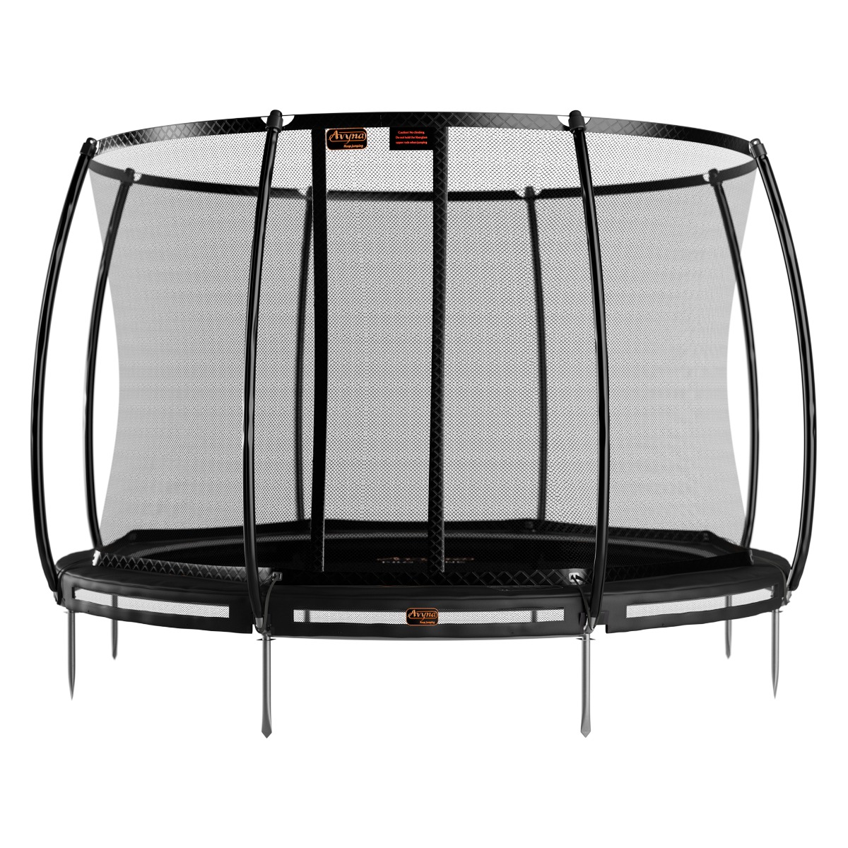 - Grote ronde Avyna Pro-Line InGround trampoline met veiligheidsnet in zwart