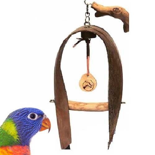 Deze leuke avontuurlijke speelschommel is geschikt voor grote parkieten en kleine papegaaien en is gemaakt van natuurlijke materialen zoals javahout en bananenblad.