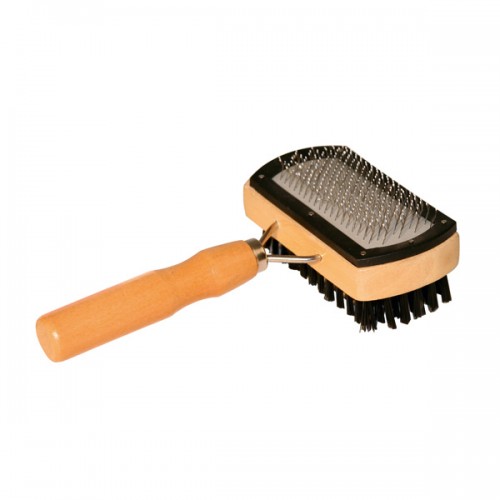Deze borstel is geschikt voor zowel honden als katten. De ene zijde is voorzien van geplastificeerde tanden, de andere zijde van zachte borstelharen.