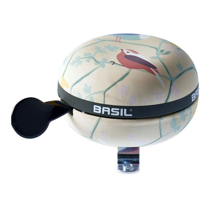 De Basil Big Bell heeft een diameter van 80 mm, wat zorgt voor een krachtig geluid en een opvallende aanwezigheid. Het materiaal is duurzaam, waardoor de bel bestand is tegen verschillende weersomstandigheden en lang meegaat. De kleurrijke afwerking in ivory met vogelprint maakt het een chique accessoire voor jouw fiets.