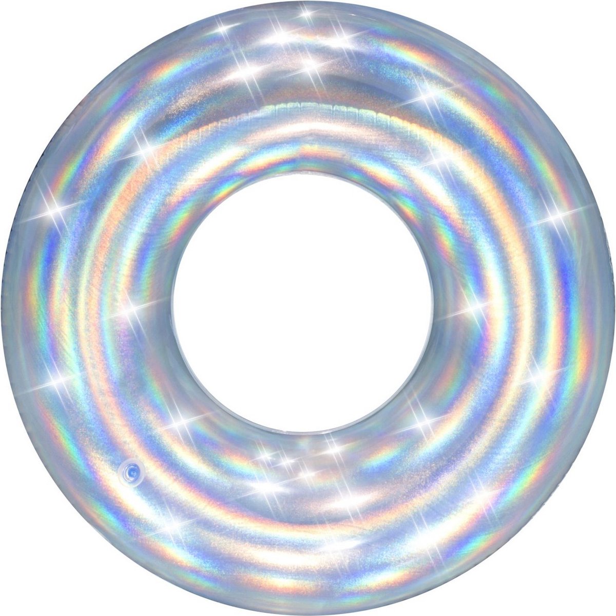 Deze zwemring is gemakkelijk op te blazen en mee te nemen naar het zwembad, strand of meer. Het iriserende ontwerp voegt een vleugje stijl toe aan je zwemuitrusting.